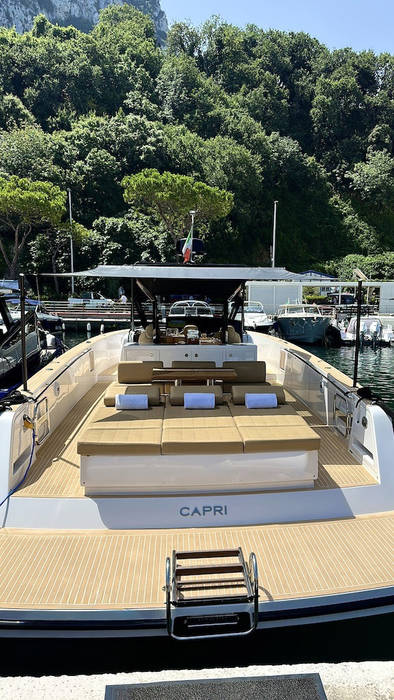 Questo yacht punta a soddisfare anche i gusti più raffinati, grazie in primis a un design pulito e aerodinamico, nonché alla generosità degli spazi esterni, studiati in ogni dettaglio per garantire il massimo relax in navigazione e in sosta, grazie alle ampie sedute e alla doppia area prendisole.